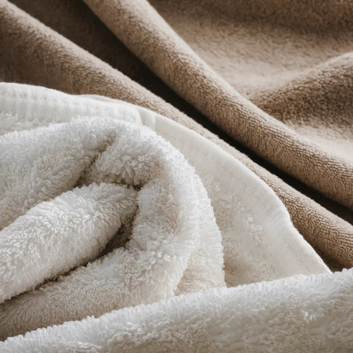 We use only 100% long-staple Egyptian cotton, woven at 800 GSM — one of the heaviest and most plush towel weights available. Unlike other brands, we use zero-twist yarns for lasting softness, higher absorbency, and a truly indulgent feel — every single day.